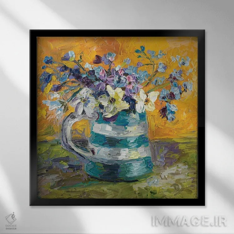 براساس پالت ترکیبی اثر، قاب تیک گرم (چوبی) پیشنهاد اول است و مشکی مات (فریم متوسط) مکمل. برای سفارشهای پروژهای با ابعاد و قابهای اختصاصی با ایماژ در تماس باشید.