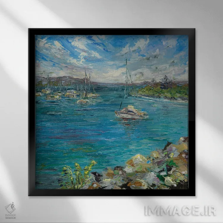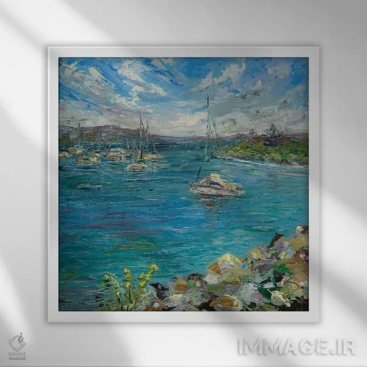 براساس پالت سرد اثر، قاب سفید مات (فریم باریک) پیشنهاد اول است و نقرهای برسخورده (متالیک) مکمل. برای سفارشهای پروژهای با ابعاد و قابهای اختصاصی با ایماژ در تماس باشید.