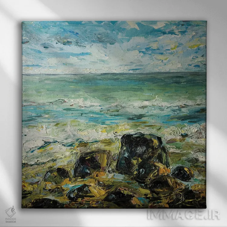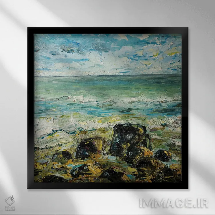 براساس پالت ترکیبی اثر، قاب تیک گرم (چوبی) پیشنهاد اول است و مشکی مات (فریم متوسط) مکمل. برای سفارشهای پروژهای با ابعاد و قابهای اختصاصی با ایماژ در تماس باشید.