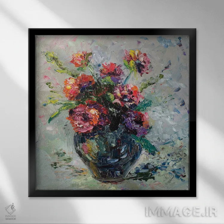 طراحی بوم گالری ایماژ بهگونهای است که اثر روی دیوار «پرداختشده» و حرفهای دیده شود—نه پرزرقوبرقِ بیپایه؛ بلکه دقیق و خوشپرداخت. بافت ظریف کنواس باعث میشود حس اثر هنری را در نگاه نزدیک نگه میدارد بدون اغراق؛ فقط دقیقتر. با کنترل تونها، تعادل بهتری بین نور و رنگ ایجاد میکند. حاصل کار، یک تابلو خوشنشین است که هم از دور اثرگذار است و هم از نزدیک خوشخوان؛ و اگر بخواهید، میتوان چیدمان را برای گالریوال هم پیشنهاد داد.