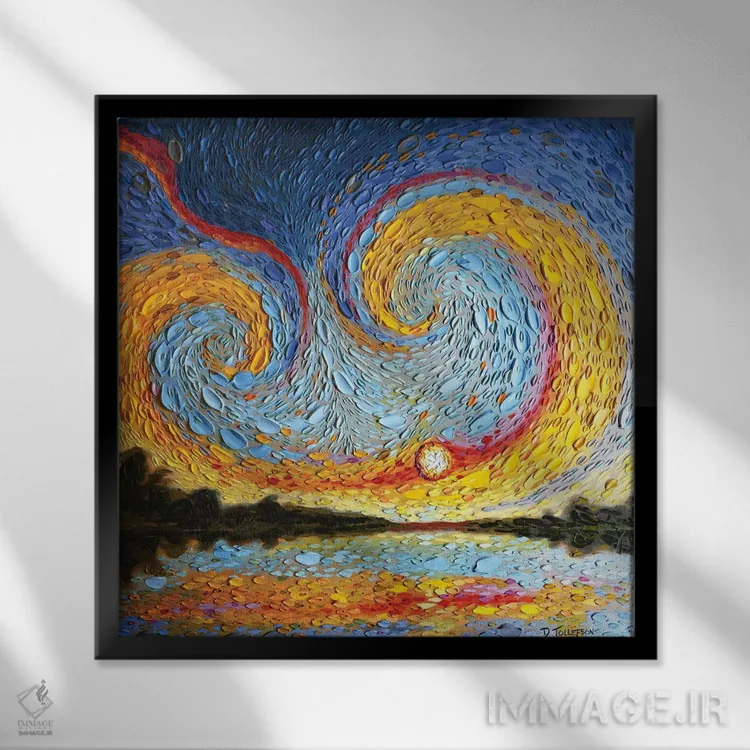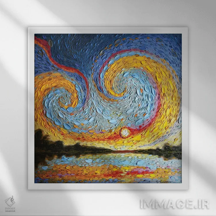 براساس پالت ترکیبی اثر، قاب تیک گرم (چوبی) پیشنهاد اول است و مشکی مات (فریم متوسط) مکمل. برای سفارشهای پروژهای با ابعاد و قابهای اختصاصی با ایماژ در تماس باشید.