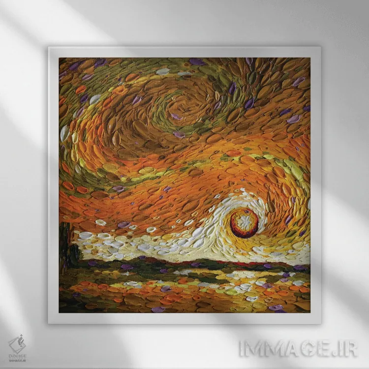 براساس پالت گرم اثر، قاب تیک گرم (چوبی) پیشنهاد اول است و مشکی مات (فریم متوسط) مکمل. برای سفارشهای پروژهای با ابعاد و قابهای اختصاصی با ایماژ در تماس باشید.