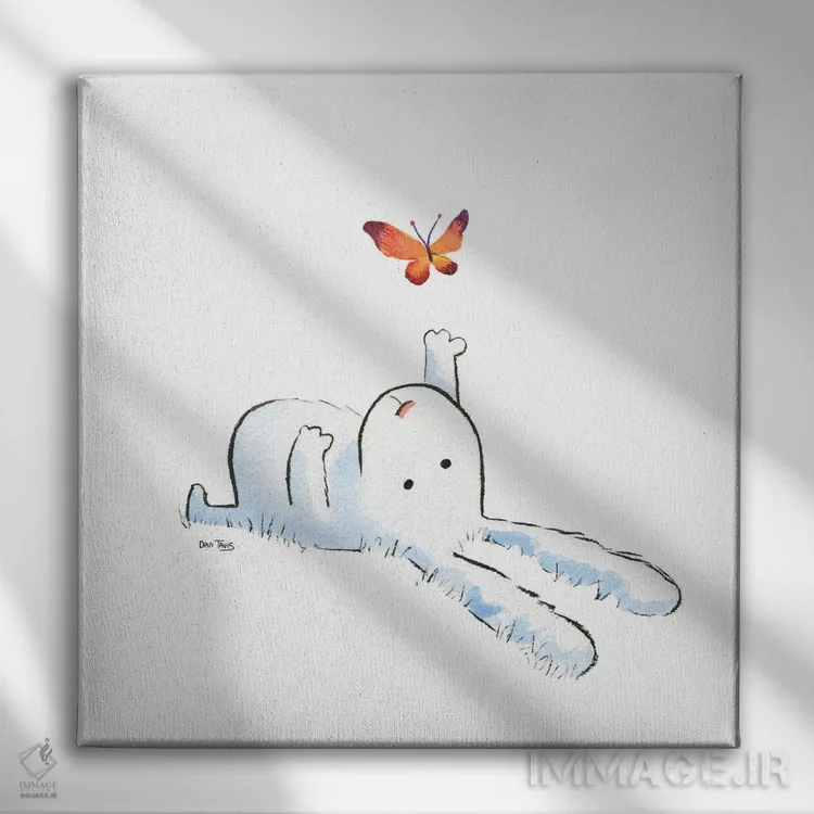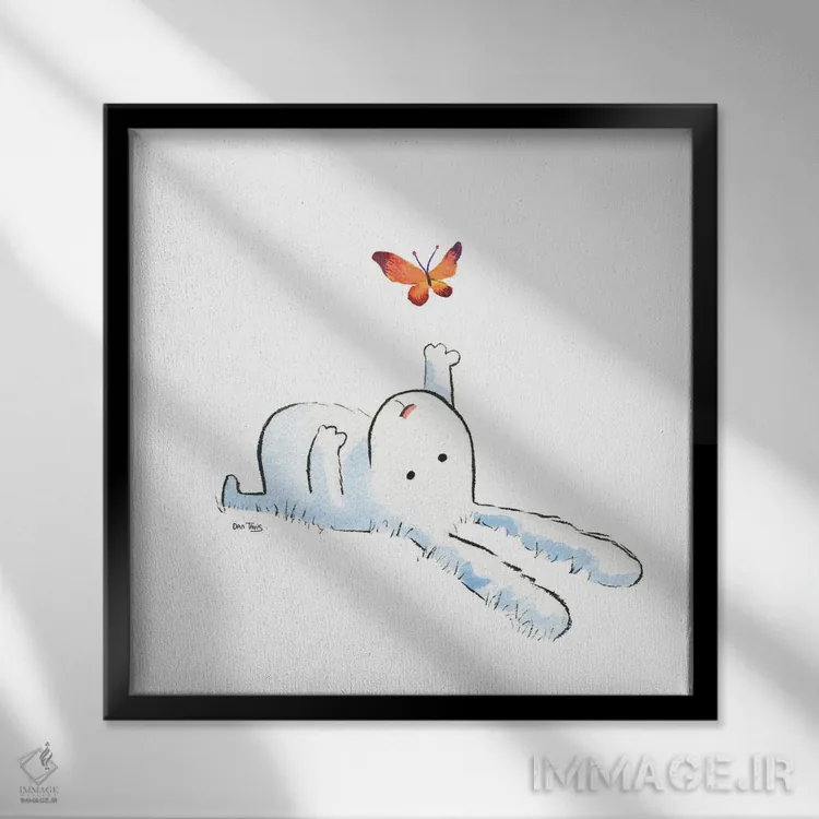 این اثر با عنوان «خرگوش و پروانه» اثرِ «دن تاویس» مثل یک امضای بامزه اما متین عمل میکند؛ برای اتاق کودک (بدون لحن کودکانه) انتخابی خوشسلیقه است. برای دیوار گالریوار هم گزینهٔ خوبیست.