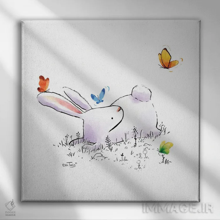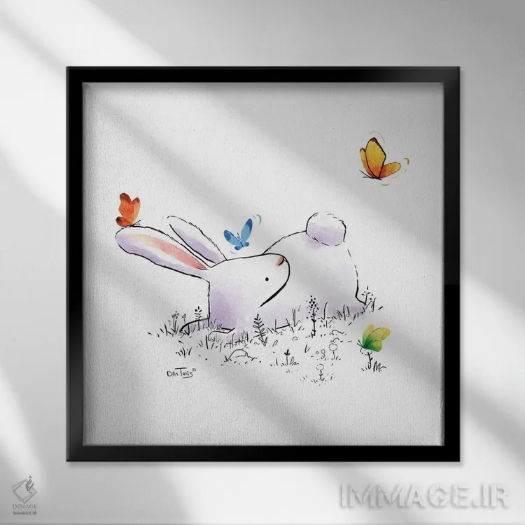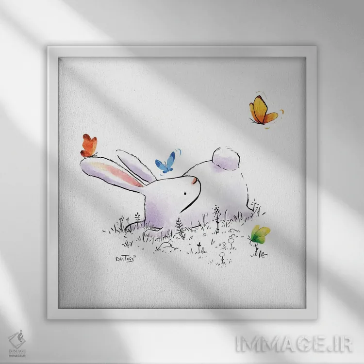 برای اتاقی که به یک عنصر دوستداشتنی نیاز دارد، «خرگوش و چهار پروانه» اثرِ «دن تاویس» به دیوار، انرژیِ نرم و زنده میدهد؛ برای راهروها و ورودیهای گرم انتخابی خوشسلیقه است. هر بار نگاهش میکنید، یک جزئیات تازه به چشم میآید.