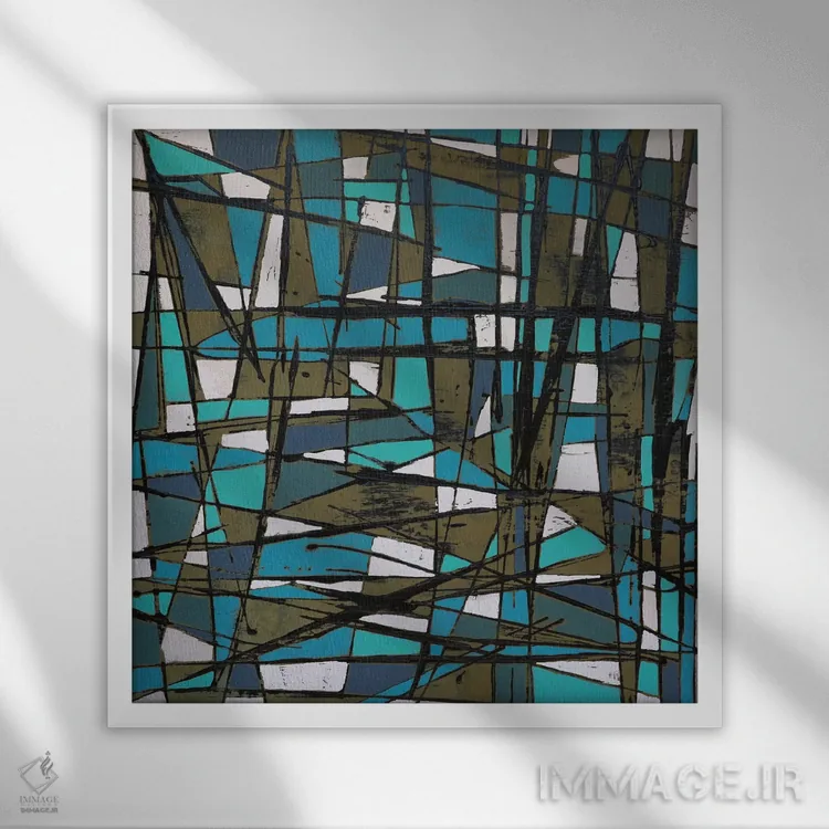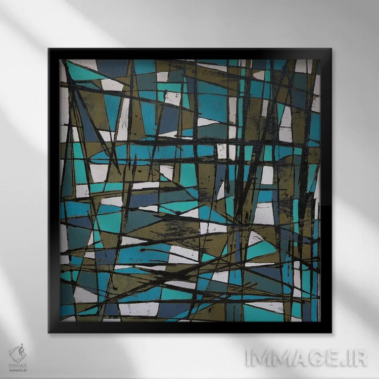 براساس پالت ترکیبی اثر، قاب تیک گرم (چوبی) پیشنهاد اول است و مشکی مات (فریم متوسط) مکمل. برای سفارشهای پروژهای با ابعاد و قابهای اختصاصی با ایماژ در تماس باشید.