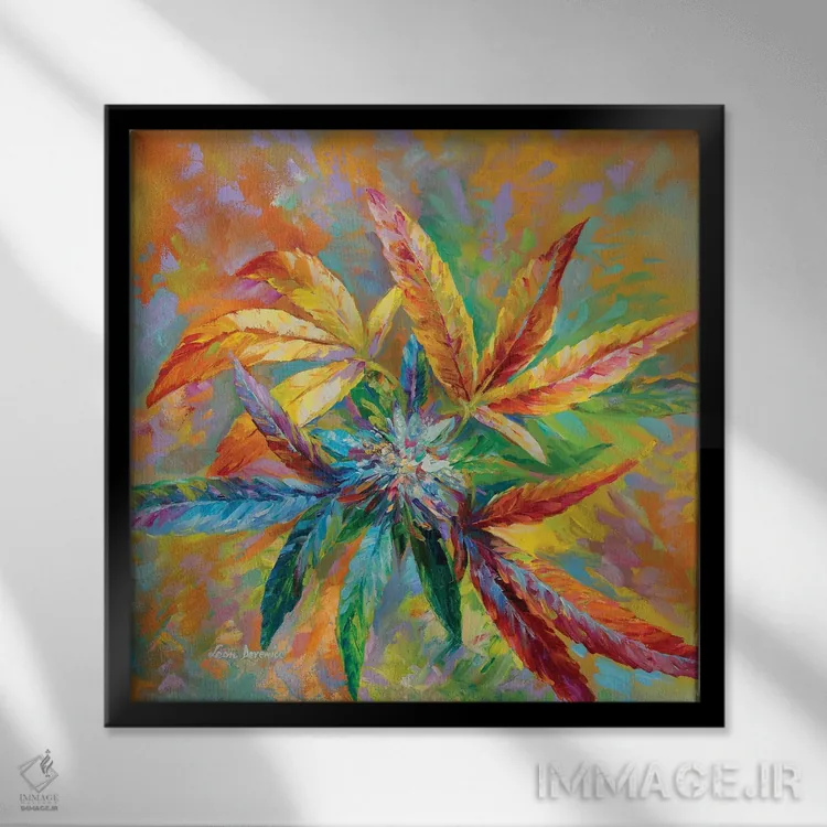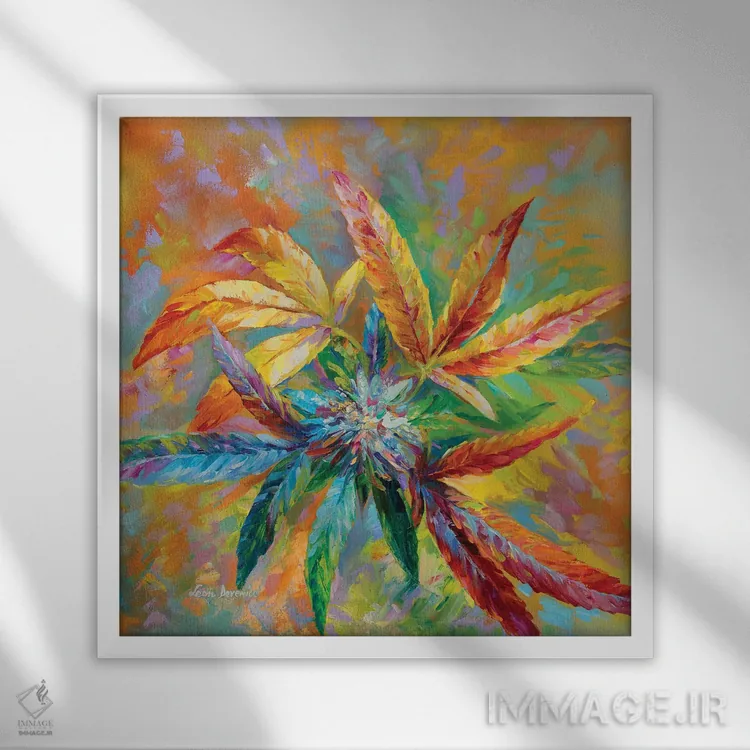 اگر دوست دارید دیوار روشنتر و آرامتر دیده شود، «هنر ماریجوانا» اثرِ «لئون دوونیس» در کنار چوب و پارچههای روشن، عالی مینشیند، برای راهروهای مینیمال گزینهٔ مناسبیست. همیشه بهروز میماند و با فصلها خوب کنار میآید.