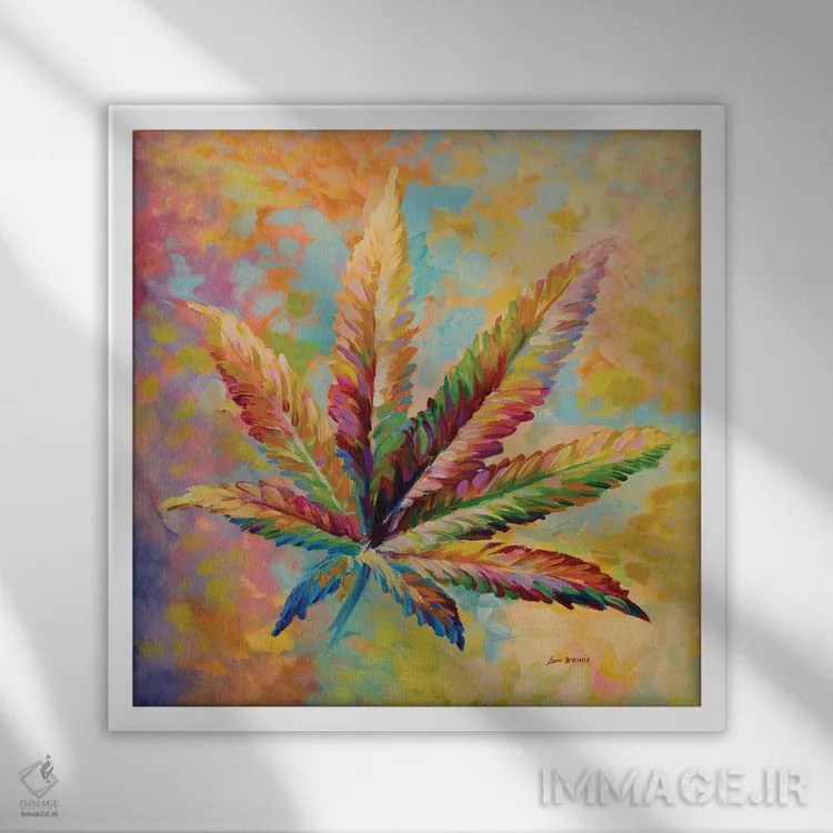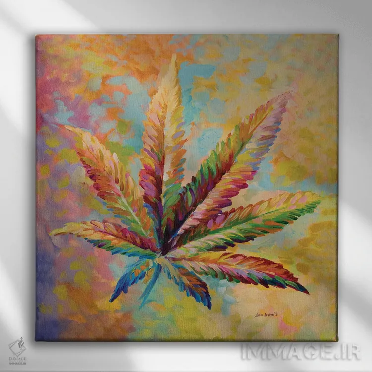 اگر دوست دارید دیوار روشنتر و آرامتر دیده شود، «برگ ماریجوانا نسخه ۱» اثرِ «لئون دوونیس» در کنار چوب و پارچههای روشن، عالی مینشیند، برای اتاق خواب گزینهٔ مناسبیست. برای دیوار گالری هم ترکیبپذیر و خوشنشین است.