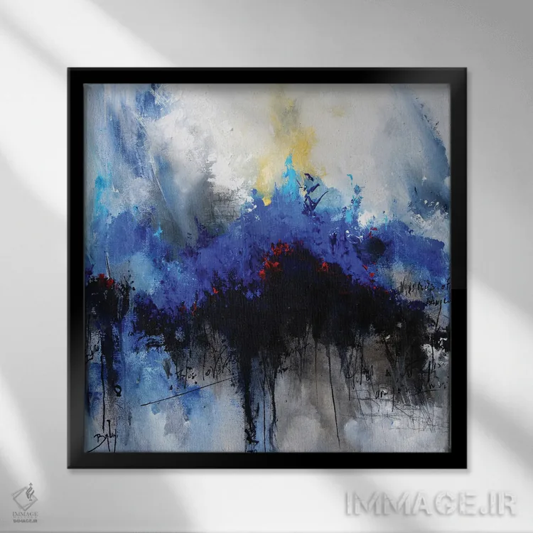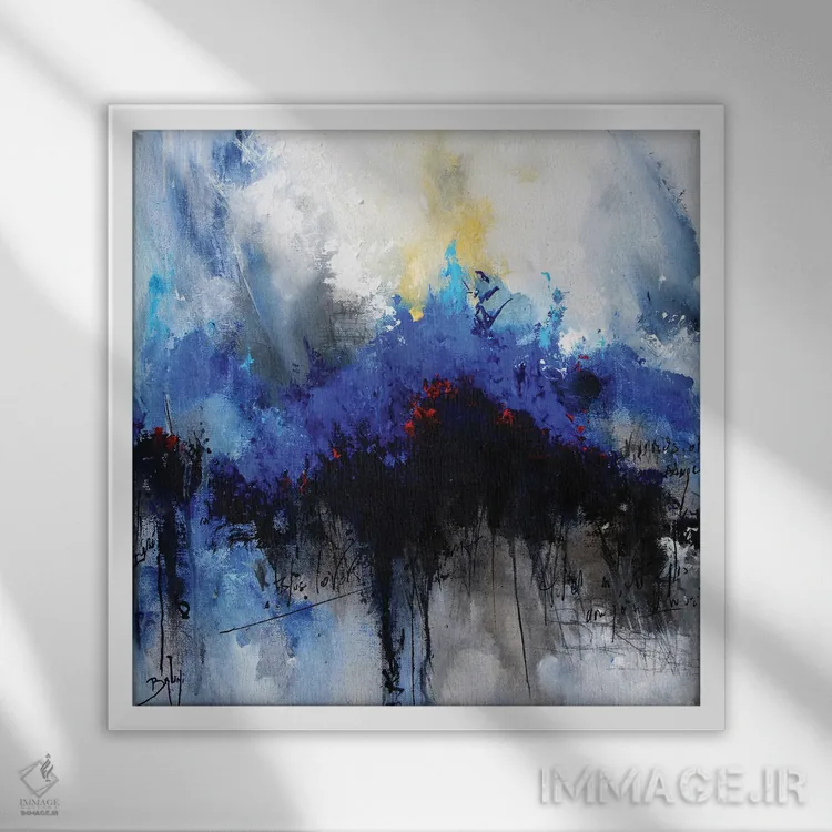 براساس پالت سرد اثر، قاب سفید مات (فریم باریک) پیشنهاد اول است و نقرهای برسخورده (متالیک) مکمل. برای سفارشهای پروژهای با ابعاد و قابهای اختصاصی با ایماژ در تماس باشید.
