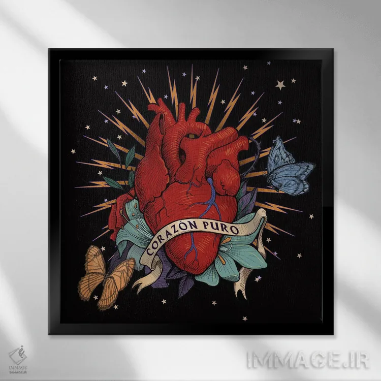 براساس پالت گرم اثر، قاب تیک گرم (چوبی) پیشنهاد اول است و مشکی مات (فریم متوسط) مکمل. برای سفارشهای پروژهای با ابعاد و قابهای اختصاصی با ایماژ در تماس باشید.