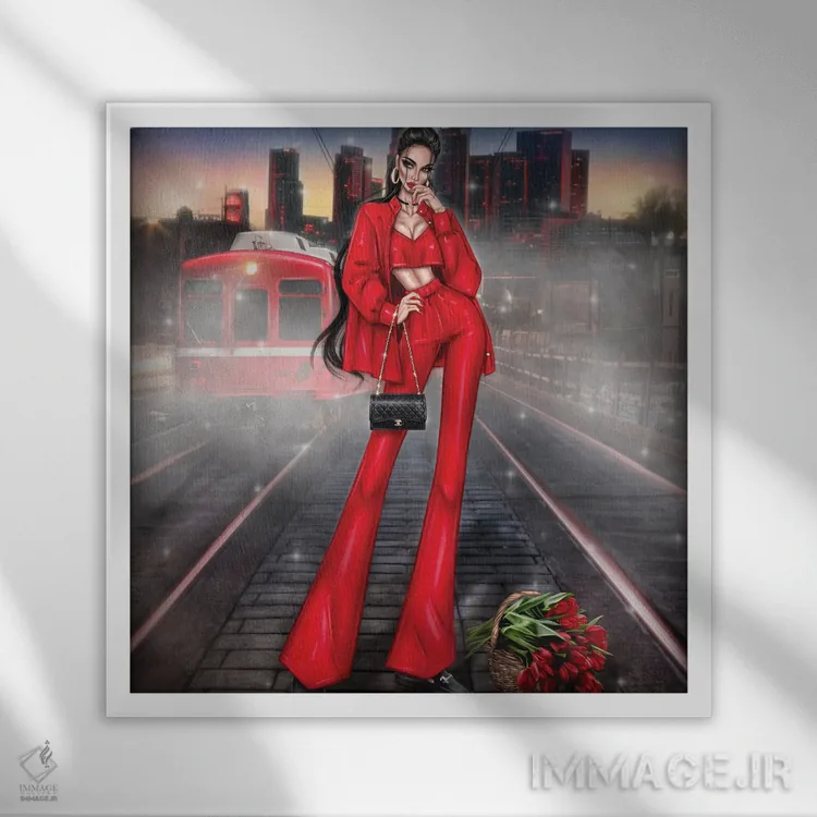 تابلو دختر با لاله‌های قرمز اثر ارین فلیس - نمای پرسپکتیو محصول
