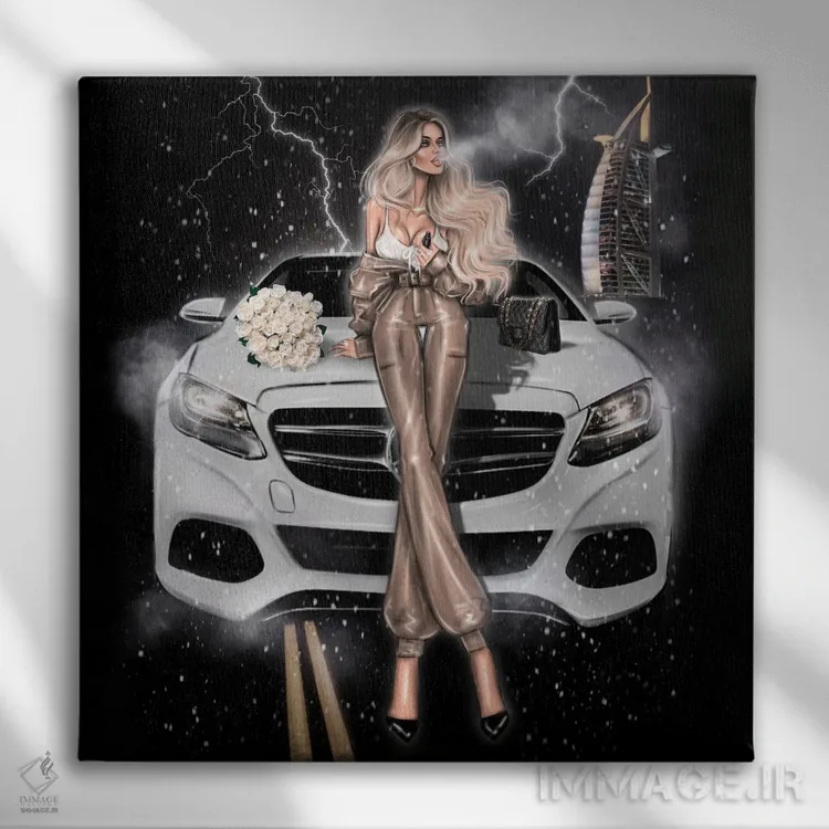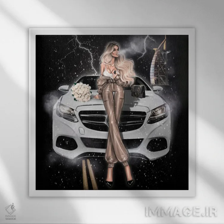 «دختر مدگرا با مرسدس» اثرِ «ارین فلیس» ترکیب خوبی برای کنار قابهای ساده و خطوط تمیزِ دکوراسیون است.