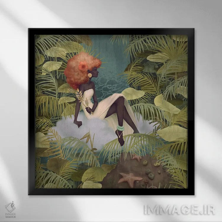 براساس پالت ترکیبی اثر، قاب بلوط روشن (چوبی) پیشنهاد اول است و استخوانی ملایم مکمل. برای سفارشهای پروژهای با ابعاد و قابهای اختصاصی با ایماژ در تماس باشید.
