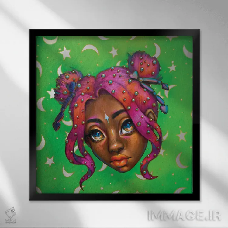 براساس پالت ترکیبی اثر، قاب تیک گرم (چوبی) پیشنهاد اول است و مشکی مات (فریم متوسط) مکمل. برای سفارشهای پروژهای با ابعاد و قابهای اختصاصی با ایماژ در تماس باشید.