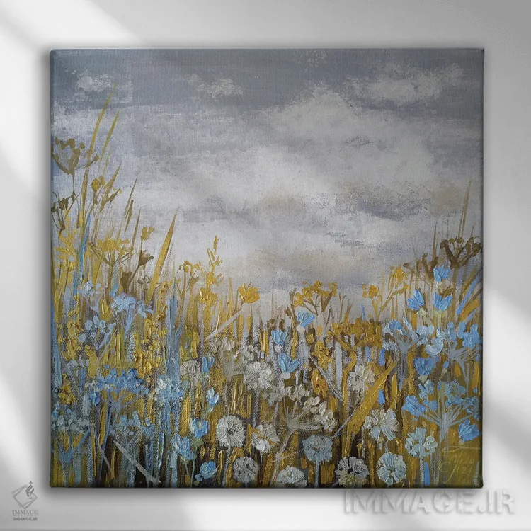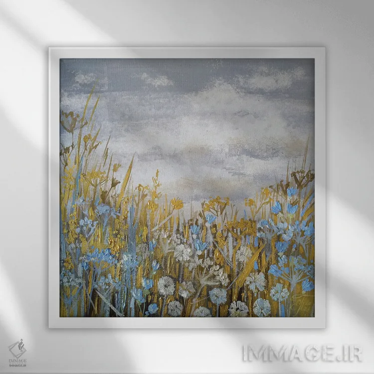 اگر دوست دارید دیوار روشنتر و آرامتر دیده شود، «افق نقرهای—طلایی» اثرِ «اکاترینا پریسیچ» به دیوار، روشناییِ ملایم و دلنشین میدهد، برای اتاق خواب گزینهٔ مناسبیست. برای دیوار گالری هم ترکیبپذیر و خوشنشین است.