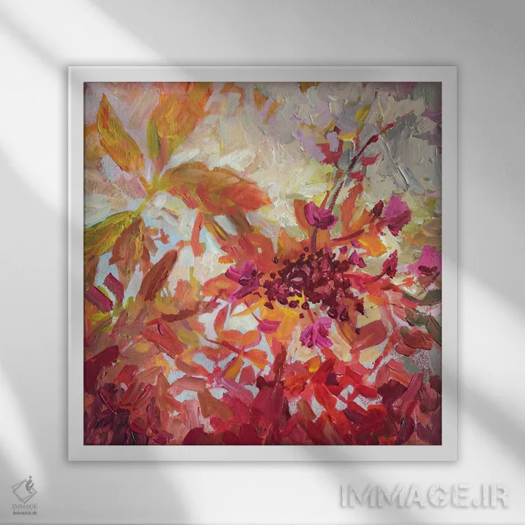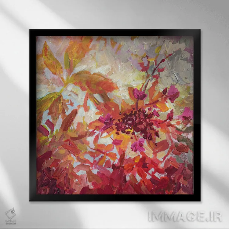 براساس پالت گرم اثر، قاب تیک گرم (چوبی) پیشنهاد اول است و مشکی مات (فریم متوسط) مکمل. برای سفارشهای پروژهای با ابعاد و قابهای اختصاصی با ایماژ در تماس باشید.