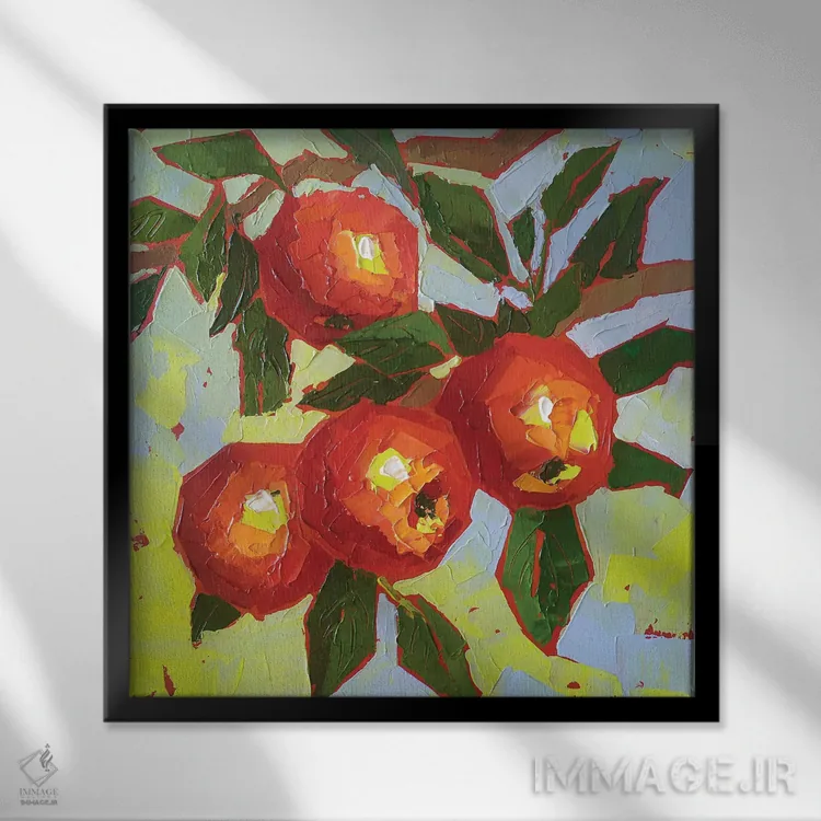 براساس پالت ترکیبی اثر، قاب تیک گرم (چوبی) پیشنهاد اول است و مشکی مات (فریم متوسط) مکمل. برای سفارشهای پروژهای با ابعاد و قابهای اختصاصی با ایماژ در تماس باشید.