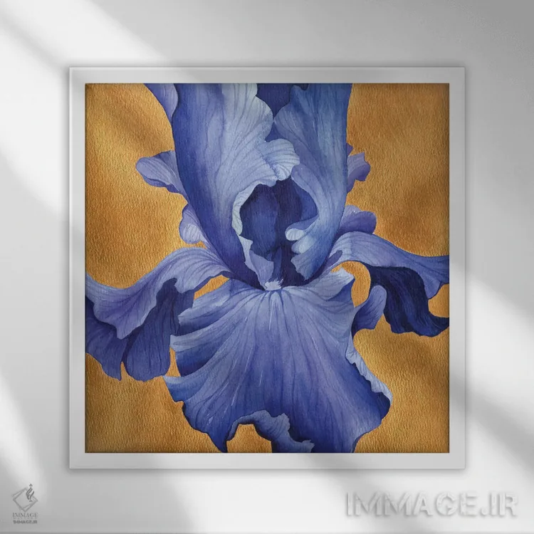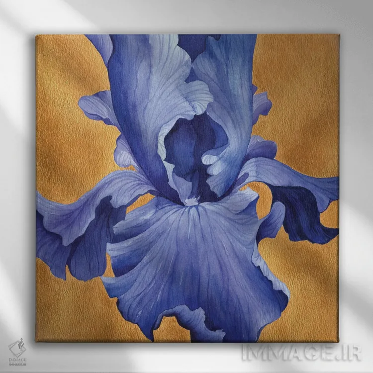 این اثر با حس این اثر و پرداختِ هنری، برای دکورهای روشن و مینیمال عالی جواب میدهد: «زنبق آبی تیره روی طلایی» اثرِ «اکاترینا پریسیچ».