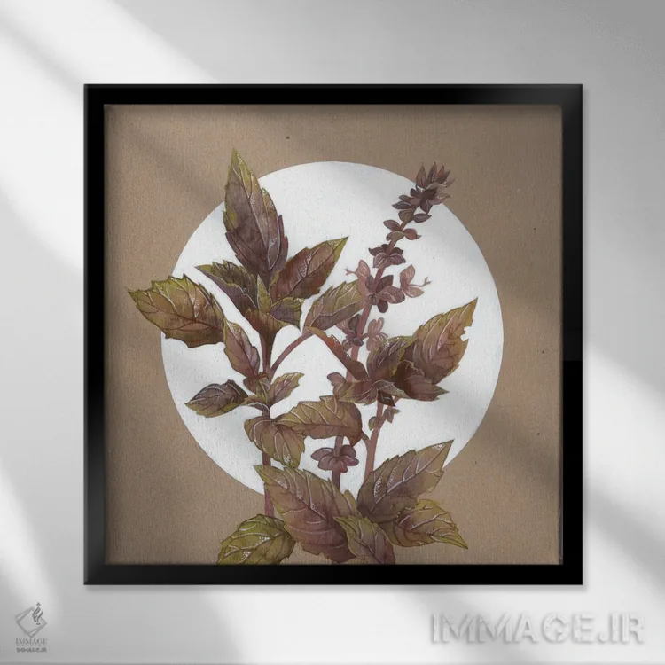 براساس پالت گرم اثر، قاب بلوط روشن (چوبی) پیشنهاد اول است و استخوانی ملایم مکمل. برای سفارشهای پروژهای با ابعاد و قابهای اختصاصی با ایماژ در تماس باشید.