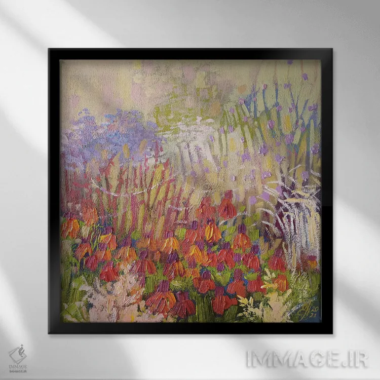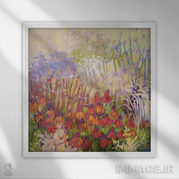 براساس پالت ترکیبی اثر، قاب تیک گرم (چوبی) پیشنهاد اول است و مشکی مات (فریم متوسط) مکمل. برای سفارشهای پروژهای با ابعاد و قابهای اختصاصی با ایماژ در تماس باشید.