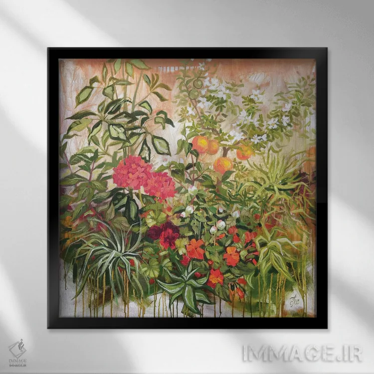 براساس پالت ترکیبی اثر، قاب تیک گرم (چوبی) پیشنهاد اول است و مشکی مات (فریم متوسط) مکمل. برای سفارشهای پروژهای با ابعاد و قابهای اختصاصی با ایماژ در تماس باشید.