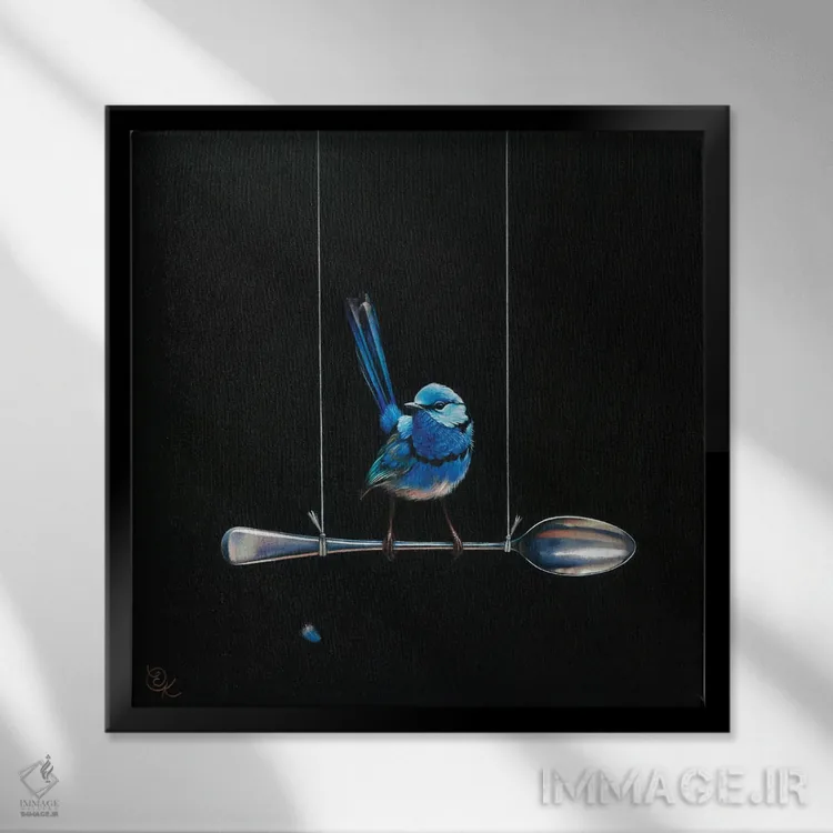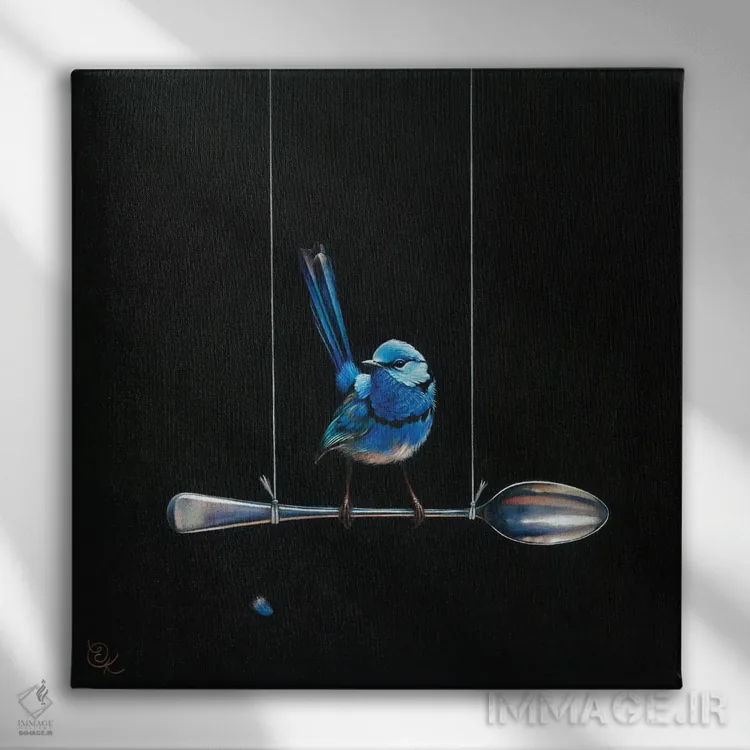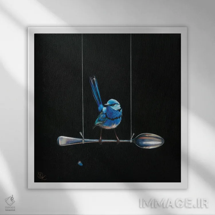 تابلو پرنده پری سرخوش روی قاشق (گونه پریآبی استرالیا) اثر النا کولوتوشا