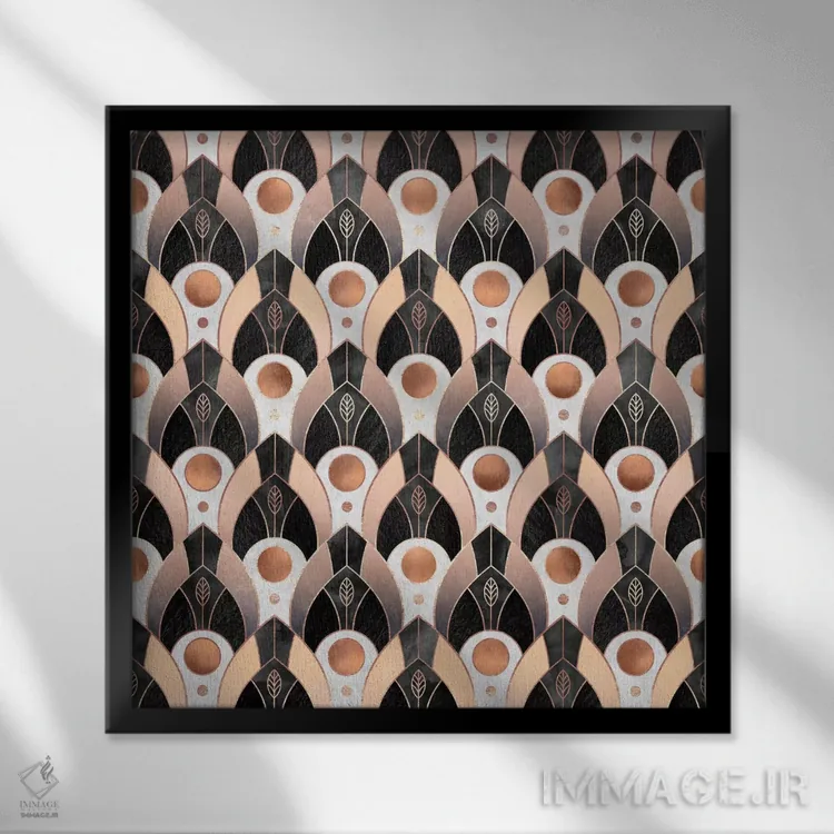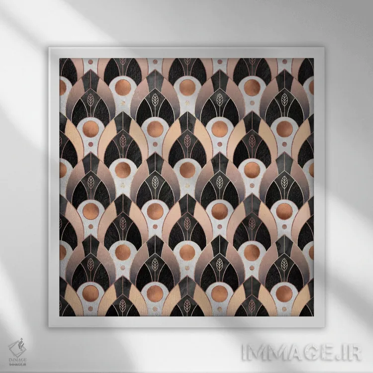 براساس پالت گرم اثر، قاب بلوط روشن (چوبی) پیشنهاد اول است و استخوانی ملایم مکمل. برای سفارشهای پروژهای با ابعاد و قابهای اختصاصی با ایماژ در تماس باشید.