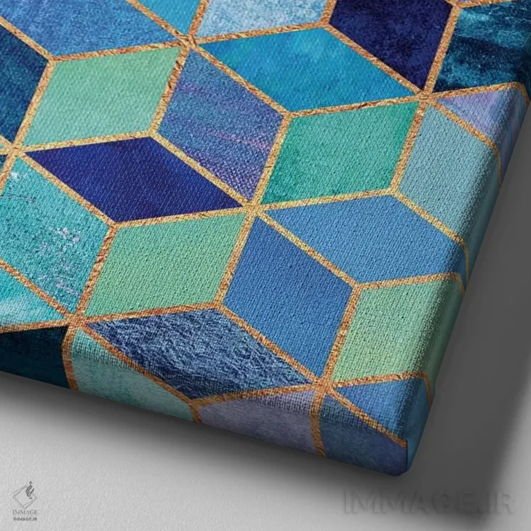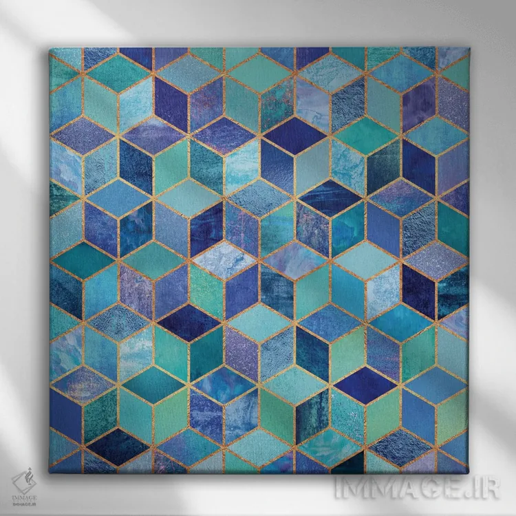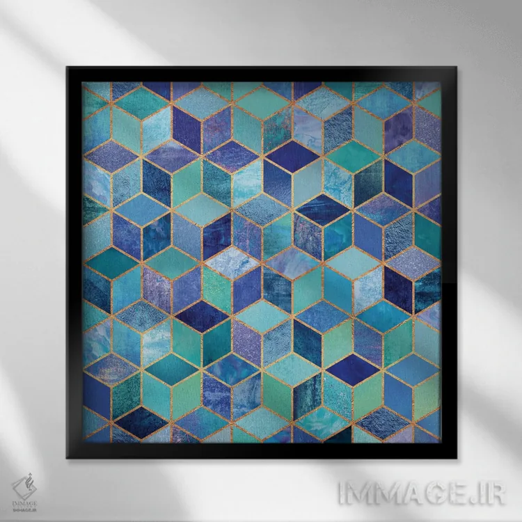 «مکعبهای آبی» اثرِ «الیزابت فردریکسون» یک انتخاب مدرن است؛ سبک هنری کمک میکند چیدمان مرتب بماند و دیوار حرفهای دیده شود.
