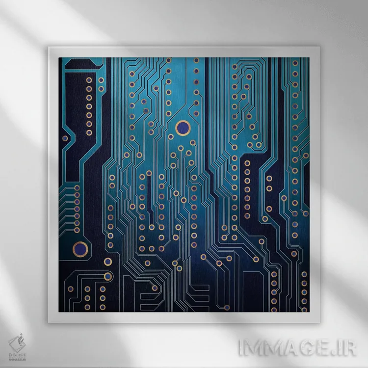«مدار چاپی ۵ (الکترونیکی)» اثرِ «الیزابت فردریکسون» اگر دنبال اثر انتزاعیِ قابلچیدمان هستید که فضا را سنگین نکند، گزینهی خوبیست.