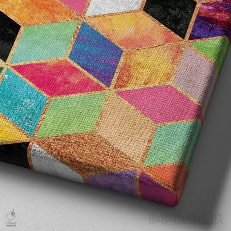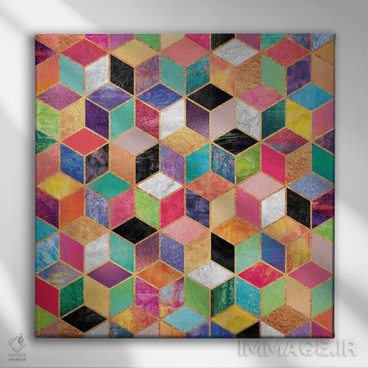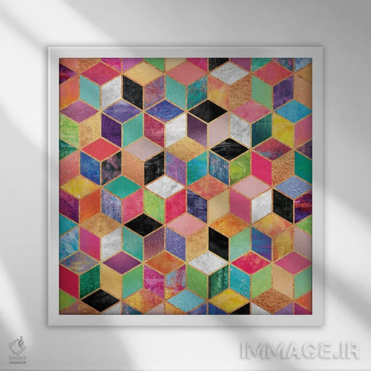 در «مکعبهای رنگارنگ» اثرِ «الیزابت فردریکسون»، ریتم بصری به چشم میآید؛ مناسب برای دیوار شاخص کنار مبلمان ساده.