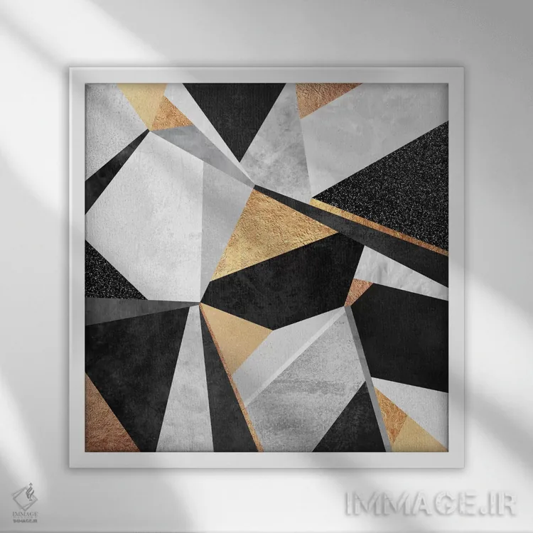 «هندسه طلایی» اثرِ «الیزابت فردریکسون» بهخاطر فرمهای آزادش، در فضاهای خنثی بهتر دیده میشود و عمق بصری ایجاد میکند.