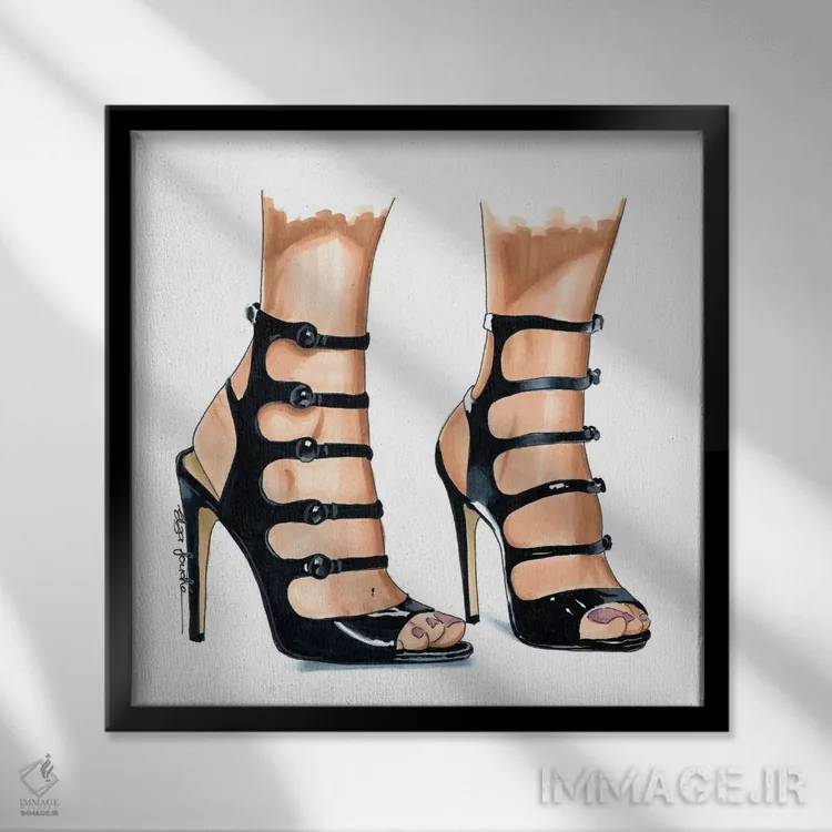 تابلو دکوراتیو کفش پاشنه دار بنددار اثر الزا فوچه
