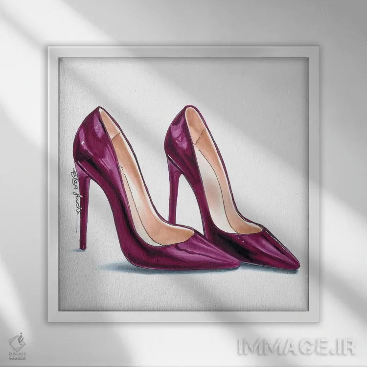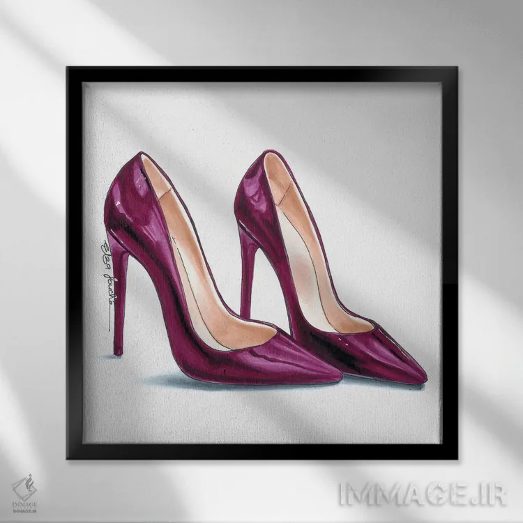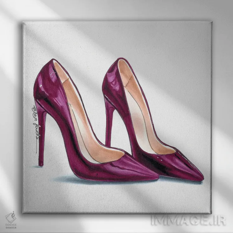 تابلو دکوراتیو کفش پاشنه دار صورتی پررنگ اثر الزا فوچه