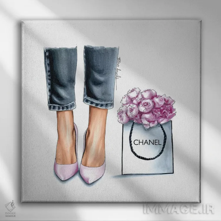 تابلو دکوراتیو کفش پاشنه دار و پئونیا اثر الزا فوچه