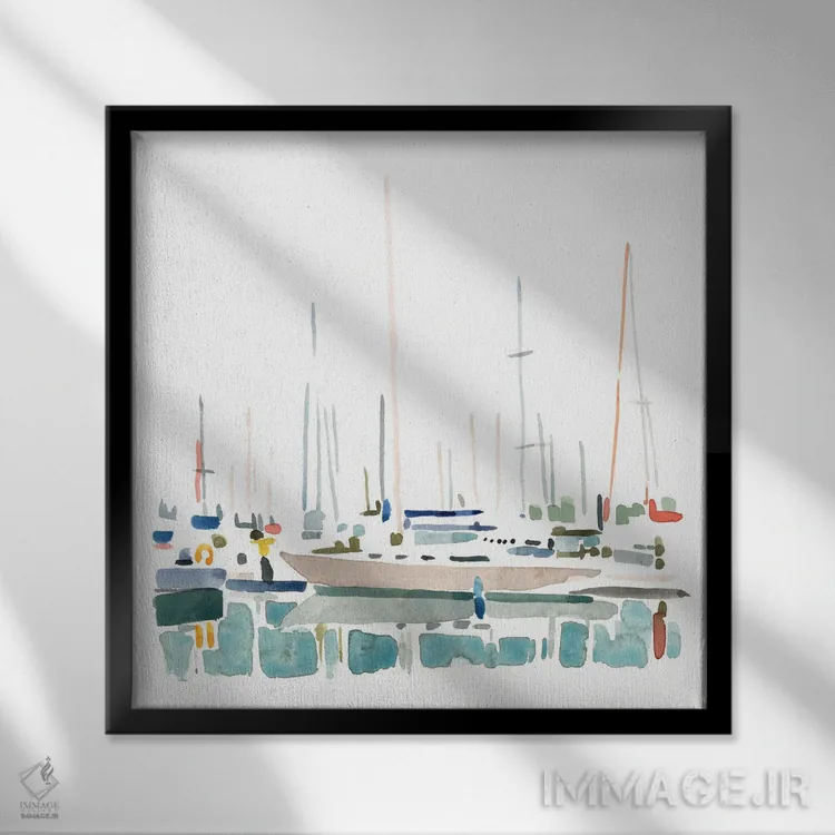 «منظره قایق بادبانی ۲» اثرِ «اما کارولین» با حالوهوای تزئینیِ این اثر، فضا را روشن و مرتب میکند؛ مناسب نشیمنهای روشن و چیدمانهای مدرن.