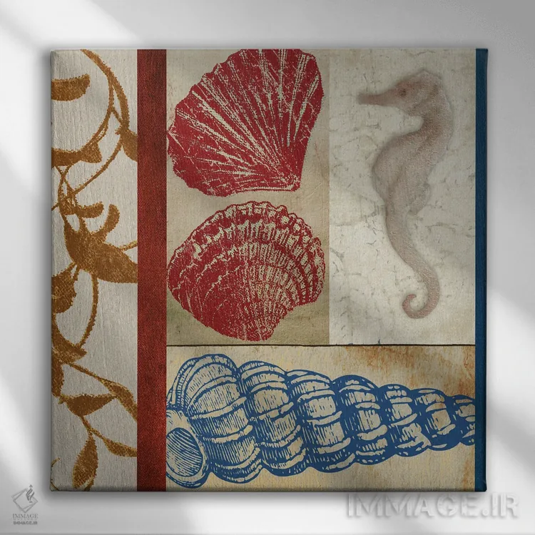 برای دکورهای صمیمی، «مربعهای محیط دریانوردی ۲» اثرِ «الیزابت مدلی» به فضا، گرمیِ ملایم اضافه میکند؛ برای خانههایی با چوب و پارچههای گرم انتخابی خوشسلیقه است. هم فضا را گرم میکند، هم شلوغش نمیکند.