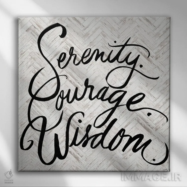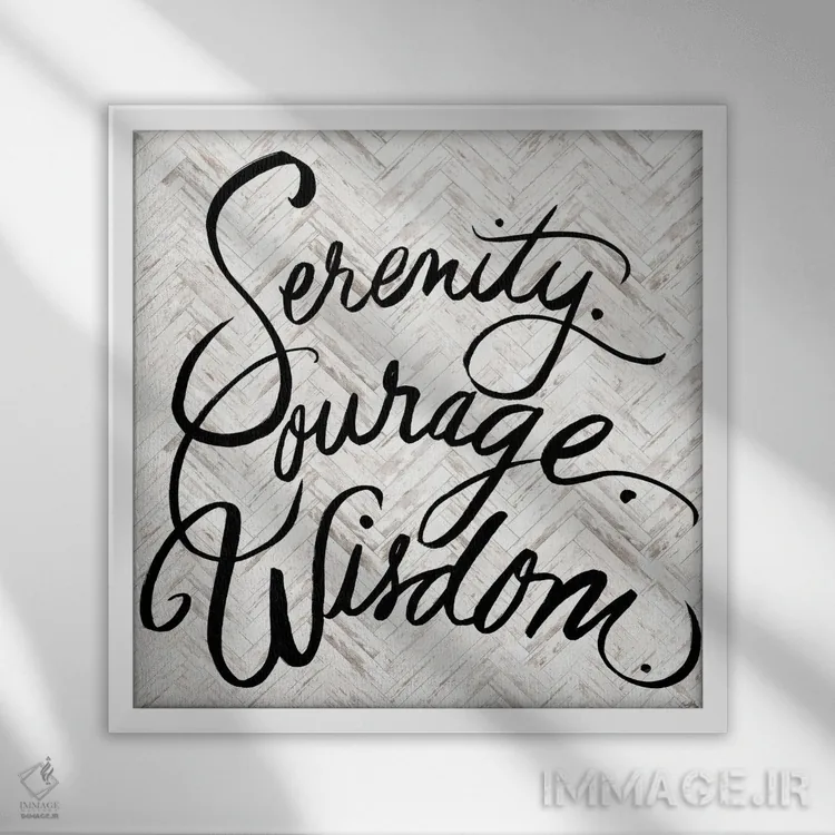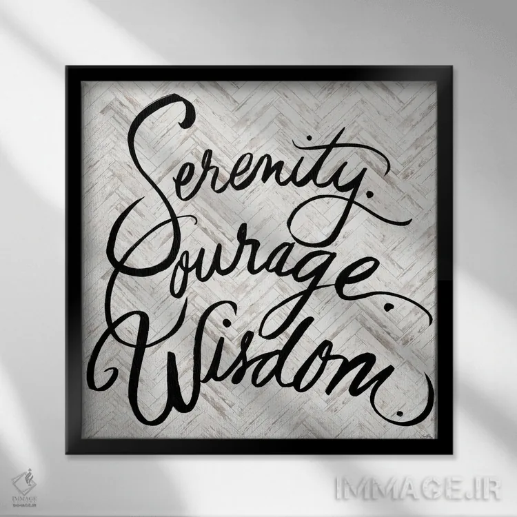 در «آرامش، شجاعت، خرد» اثرِ «الیزابت مدلی»، موضوعِ این اثر با زبان تایپوگرافی روایت میشود؛ تمیز، شفاف و قابلخواندن.