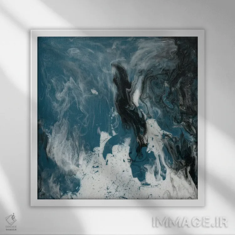 براساس پالت سرد اثر، قاب سفید مات (فریم باریک) پیشنهاد اول است و نقرهای برسخورده (متالیک) مکمل. برای سفارشهای پروژهای با ابعاد و قابهای اختصاصی با ایماژ در تماس باشید.