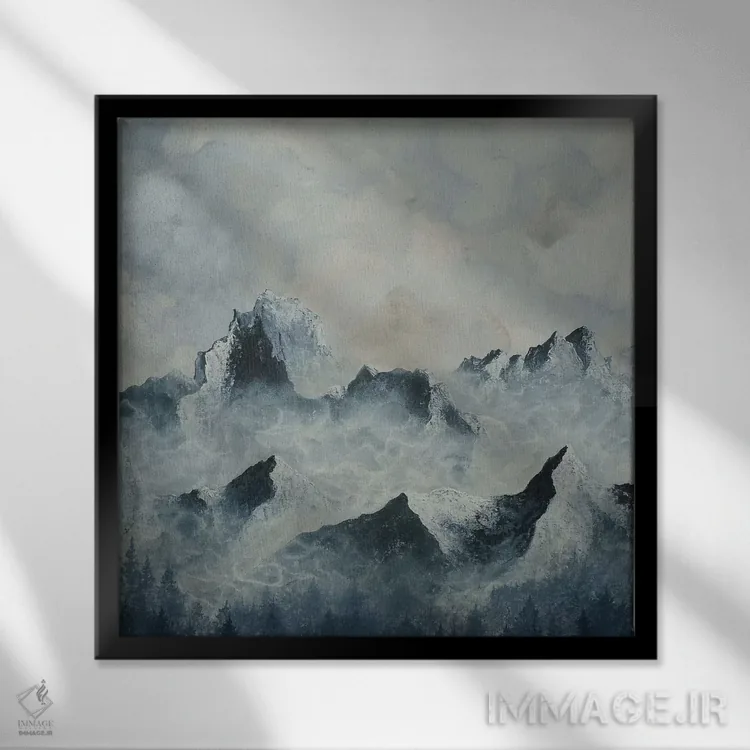 براساس پالت سرد اثر، قاب سفید مات (فریم باریک) پیشنهاد اول است و نقرهای برسخورده (متالیک) مکمل. برای سفارشهای پروژهای با ابعاد و قابهای اختصاصی با ایماژ در تماس باشید.