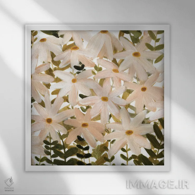 تابلو مزرعه مروارید ۱ (گل داوودی) اثر اما اسکاروی - نمای قاب‌دار سفید
