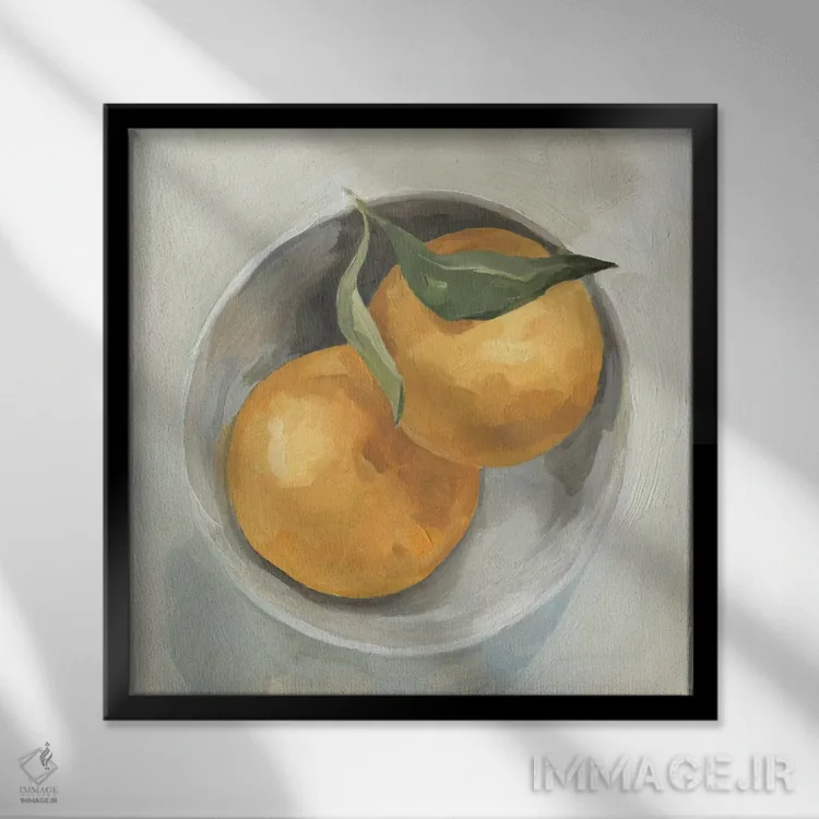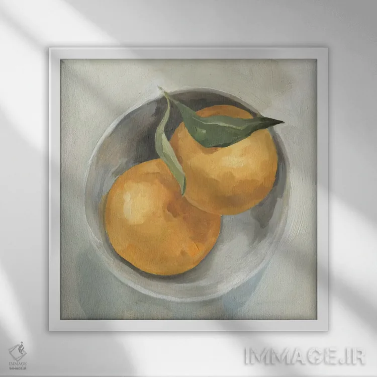 براساس پالت گرم اثر، قاب بلوط روشن (چوبی) پیشنهاد اول است و استخوانی ملایم مکمل. برای سفارشهای پروژهای با ابعاد و قابهای اختصاصی با ایماژ در تماس باشید.