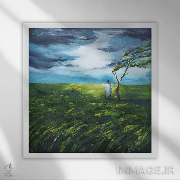 براساس پالت سرد اثر، قاب سفید مات (فریم باریک) پیشنهاد اول است و نقرهای برسخورده (متالیک) مکمل. برای سفارشهای پروژهای با ابعاد و قابهای اختصاصی با ایماژ در تماس باشید.