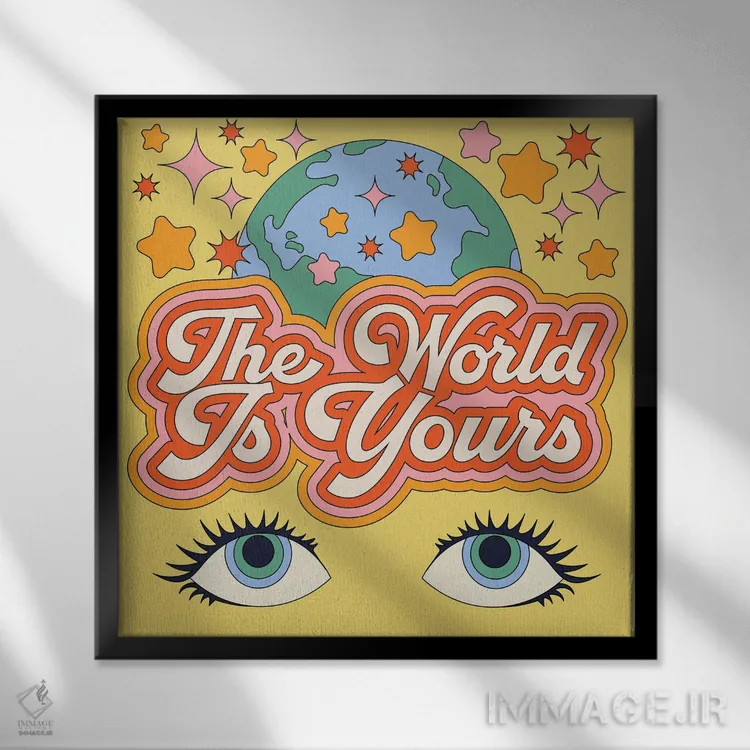 در «دنیا متعلق به توست» اثرِ «پاردوکس بینظیر (نام هنری یا استودیوی خلاقانه)»، کلمات نقش تصویر را بازی میکنند؛ انتخابی خوب برای اتاق کار، استودیو یا کافهاستایل.