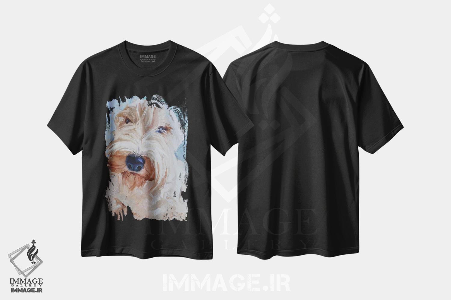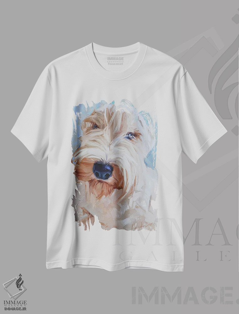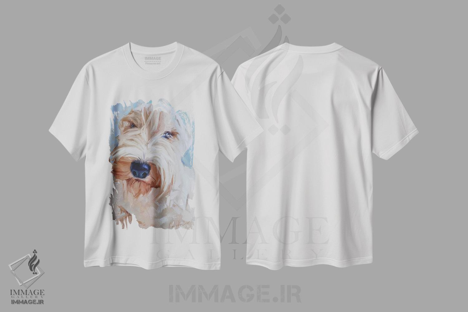 تیشرت طرح دار پرترهٔ سگ سفید اثر الکس مووچون