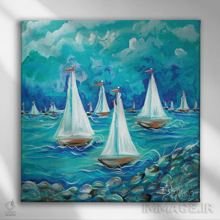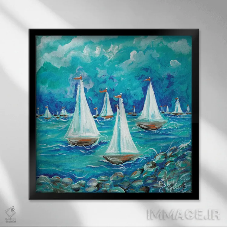 اگر دیوارِ راهرو یا گوشهی مطالعه نیاز به یک قاب خوشانرژی دارد، «بادبانی کردن» اثرِ «استل گرنگس» با تم این اثر گزینهی مناسبی است.
