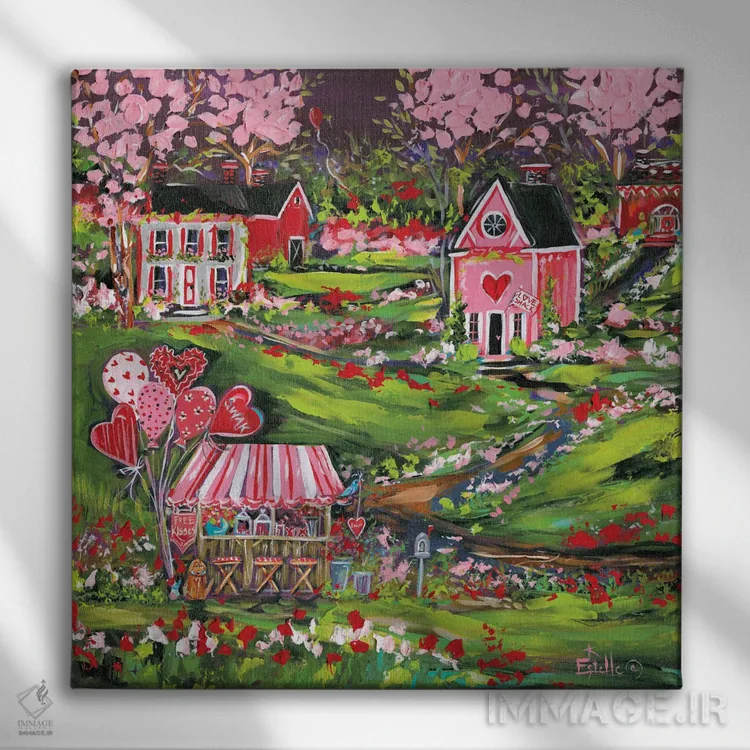 این تابلو تزئینی با موضوعِ این اثر برای هدیه و دکورهای روشن همیشه جواب میدهد: «روستای عشق» اثرِ «استل گرنگس».