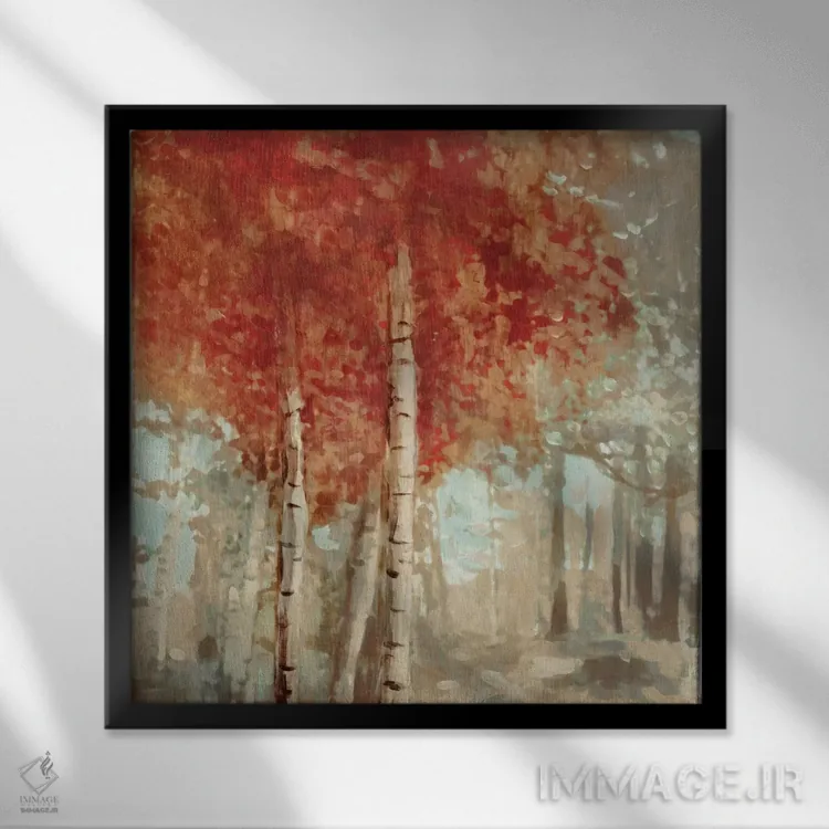 براساس پالت گرم اثر، قاب بلوط روشن (چوبی) پیشنهاد اول است و استخوانی ملایم مکمل. برای سفارشهای پروژهای با ابعاد و قابهای اختصاصی با ایماژ در تماس باشید.