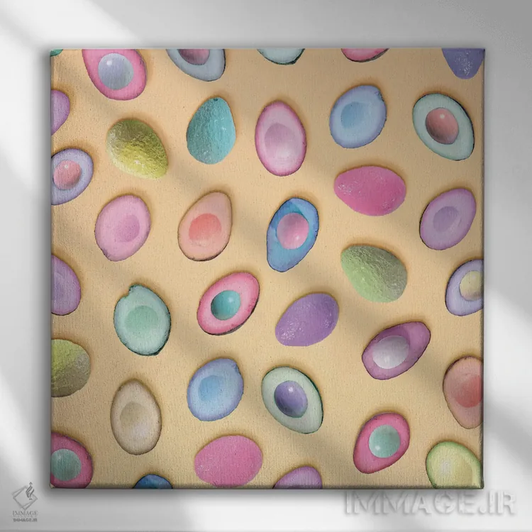 تابلو آووکادوهای پاستلی اثر ارین سامر - نمای نزدیک بافت بوم