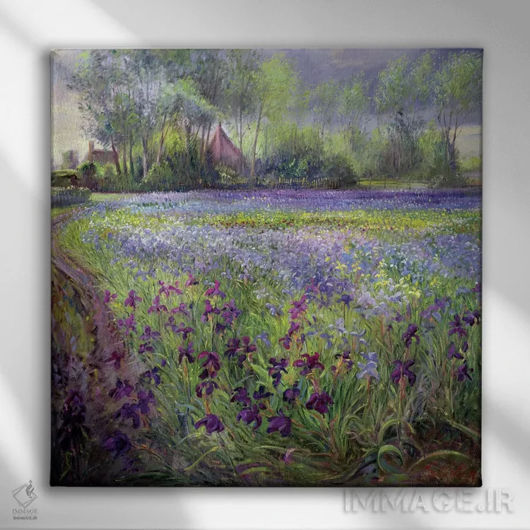 تابلو جاده کنار مزرعه زنبق، ۱۹۹۱ اثر تیموتی ایستون - نمای قاب‌دار سفید