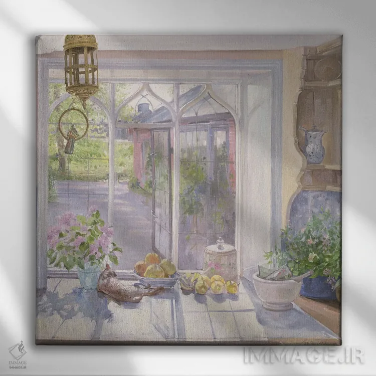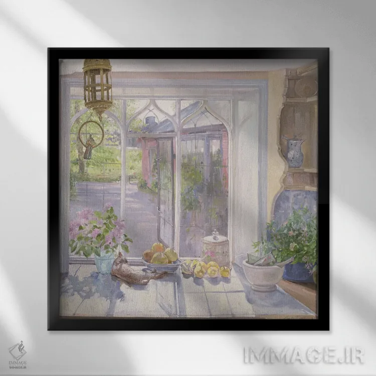 براساس پالت گرم اثر، قاب بلوط روشن (چوبی) پیشنهاد اول است و استخوانی ملایم مکمل. برای سفارشهای پروژهای با ابعاد و قابهای اختصاصی با ایماژ در تماس باشید.