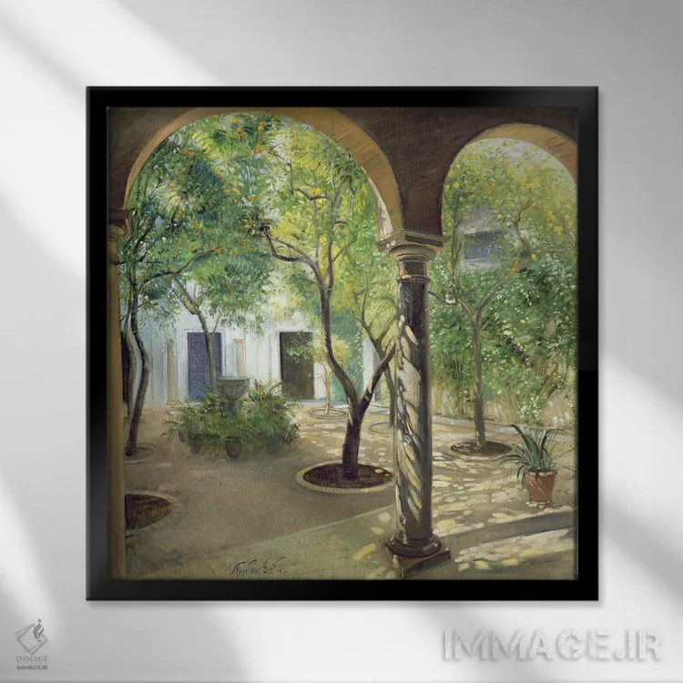 «حیاط سایهدار، کاخ ویانا، کوردوبا» اثرِ «تیموتی ایستون» یک انتخاب گالریپسند است؛ این اثر در قالب هنری، برای دیوارهای روشن و نورپردازی گرم عالی مینشیند.